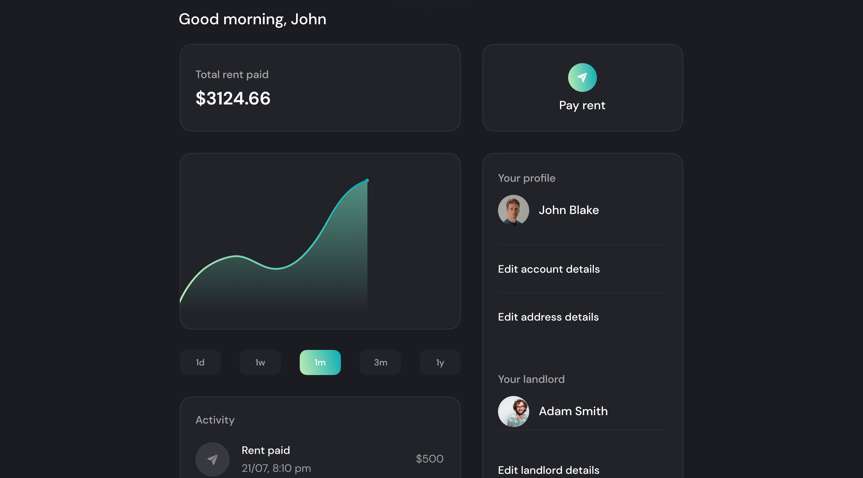 Just select your landlord or renter, enter the amount and you're good to go. That's it.